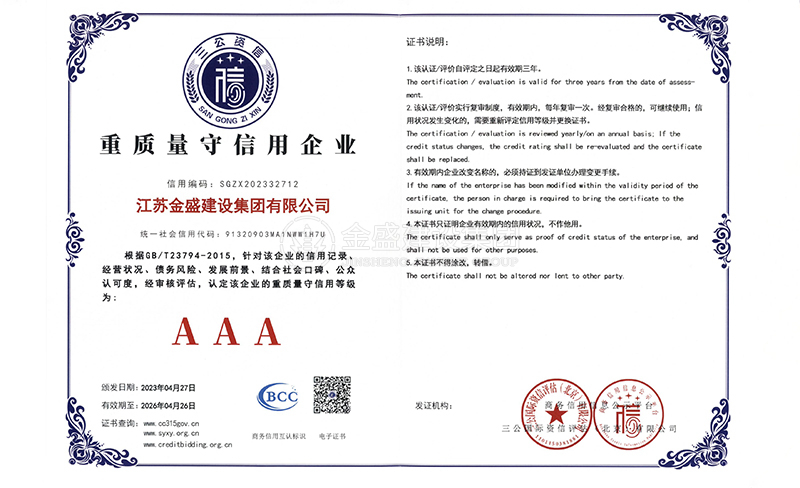 3A級(jí)資信等級(jí)證書(shū)